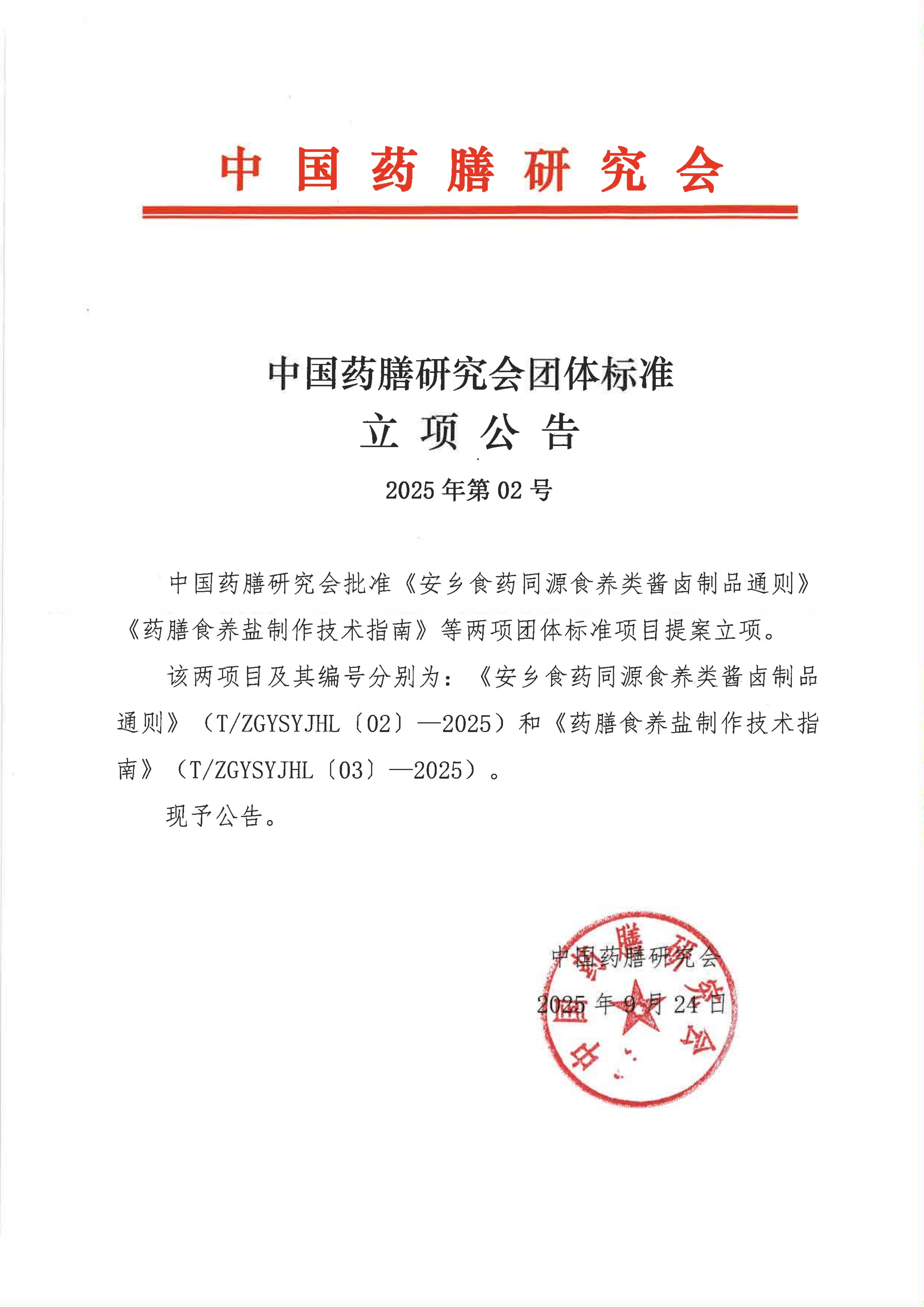 关于征求《中国药膳制作及从业资质基本要求》等5项药膳团标意见的函