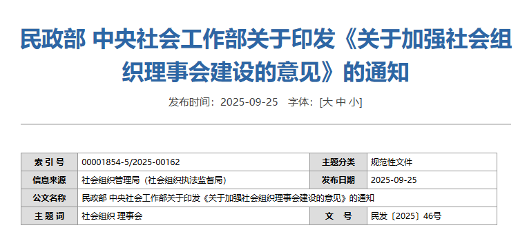 民政部 中央社会工作部关于印发《关于加强社会组织理事会建设的意见》的通知
